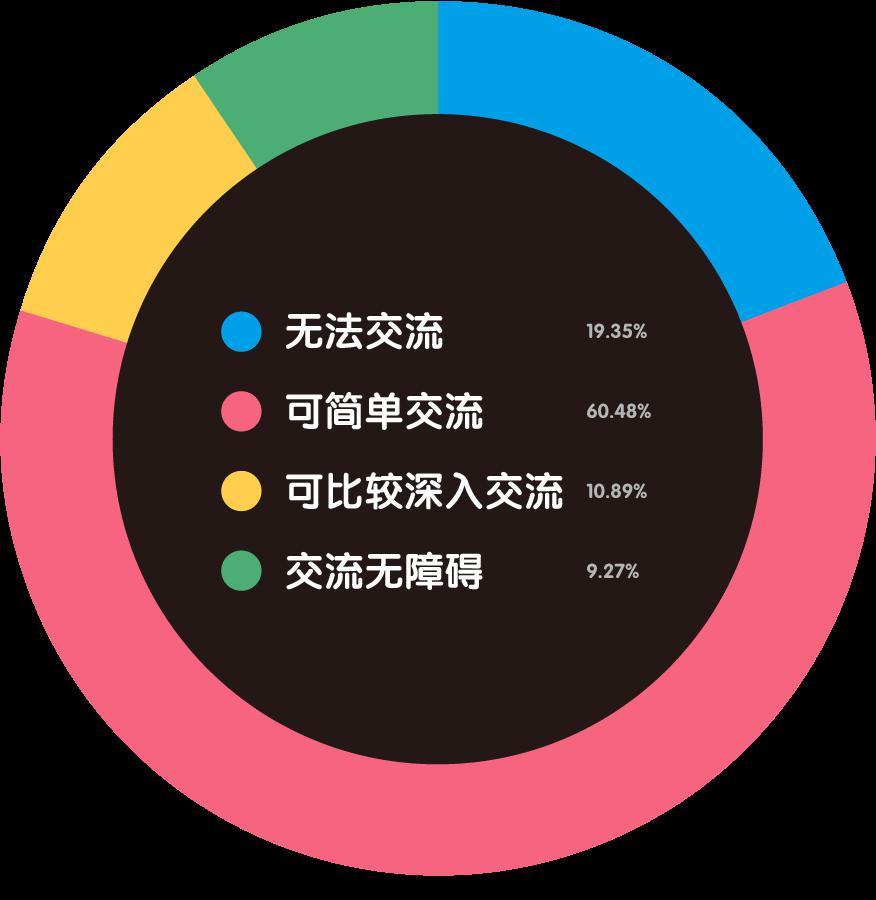 深陷英语应试教育泥潭中的“80后”们,大多数停留在简单交流层面,甚至有近两成的艺术家表示自己无法交流。“本土”艺术家们想要真正实现“同步”,恐怕还得先过语言这关。不过,未来实时翻译设备的普及,或许可以拯救外语不怎么好的大多数艺术家们!