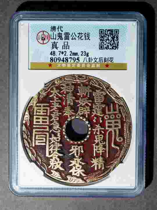 清代 山鬼雷公花钱 八卦文后刻花一枚