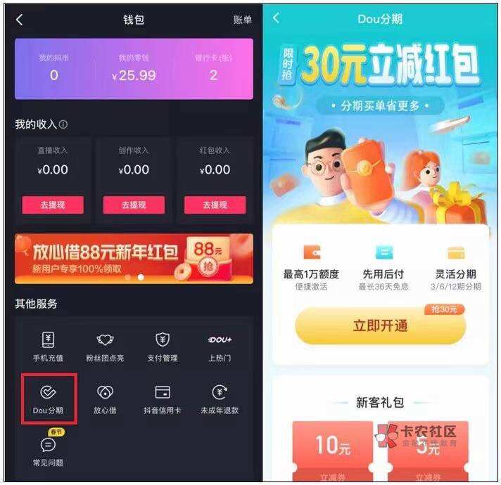 3、在我的钱包里面,如果是有Dou分期的入口,就可以看到(如图所示)
