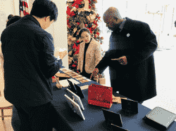 此外,展览还展出了由“朴墨心画”院推出的一系列典雅精美以及生活化的文创产品,如启迪艺术潜能的《朴源心典》、致典致雅的『朴墨心画作品明信片』套册、展现生活化的艺术品『陶瓷吸水杯垫』等等。这些新奇的、并具有浓厚中国元素的文创产品在他们看来是难得一见的,所以,深受观者的喜爱。